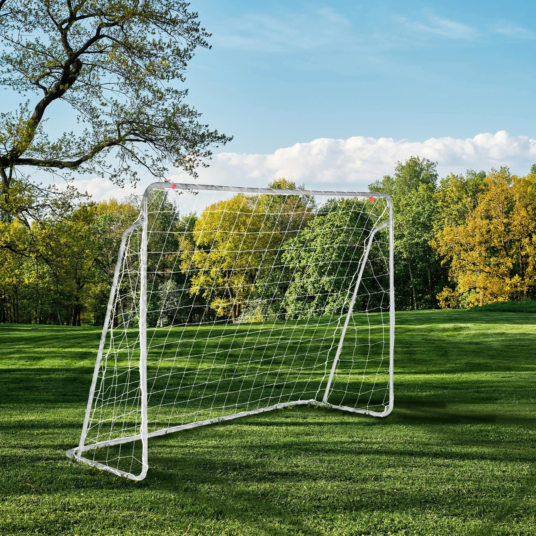 Setul include țăruși pentru ancorare sigură și clipsuri care mențin plasa bine fixată. Poarta este excelentă pentru antrenamentele copiilor acasă, perfecționarea preciziei șuturilor și meciuri mici în grădină.