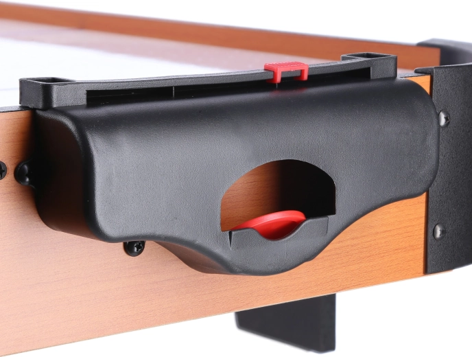 Masa se asamblează ușor, iar după joc o puteți depozita și în poziție verticală, economisind spațiu. Contorizatoarele manuale glisante de pe ambele părți mențin evidența scorului, iar accesoriile complete din pachet vă permit să începeți jocul imediat după despachetare.