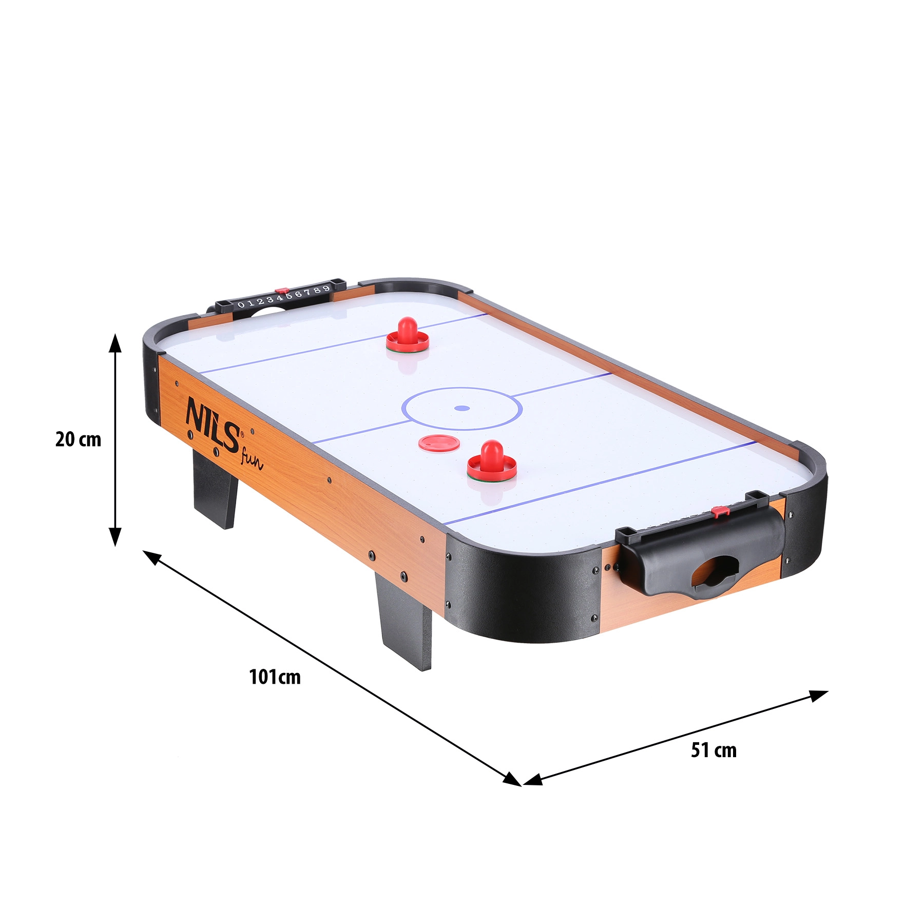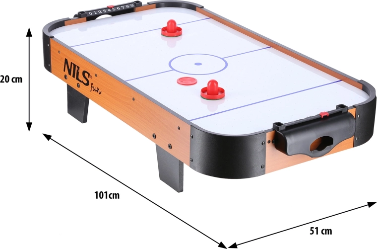 Air hockey-ul NILS Fun ICER aduce distracție dinamică pentru doi jucători. Datorită ventilatorului și sistemului de orificii pentru aer, pucul alunecă pe suprafața de joc cu frecare minimă, asigurând un joc rapid și palpitant. Placa durabilă din MDF și calitatea execuției garantează o durată lungă de viață chiar și la utilizare frecventă.
