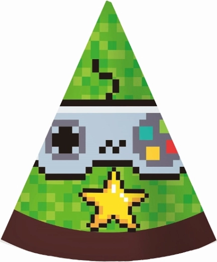Căciulițe aniversare din hârtie, cu motiv de jocuri pe calculator, care vor încânta orice jucător. Sunt foarte ușoare, confortabile și, datorită elasticului, stau perfect fără presiune neplăcută. Un accesoriu de petrecere ideal pentru aniversări de copii și petreceri cu tematică de gaming.