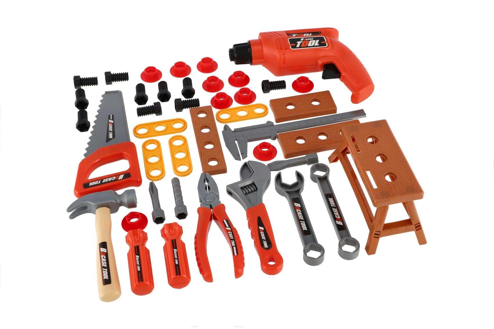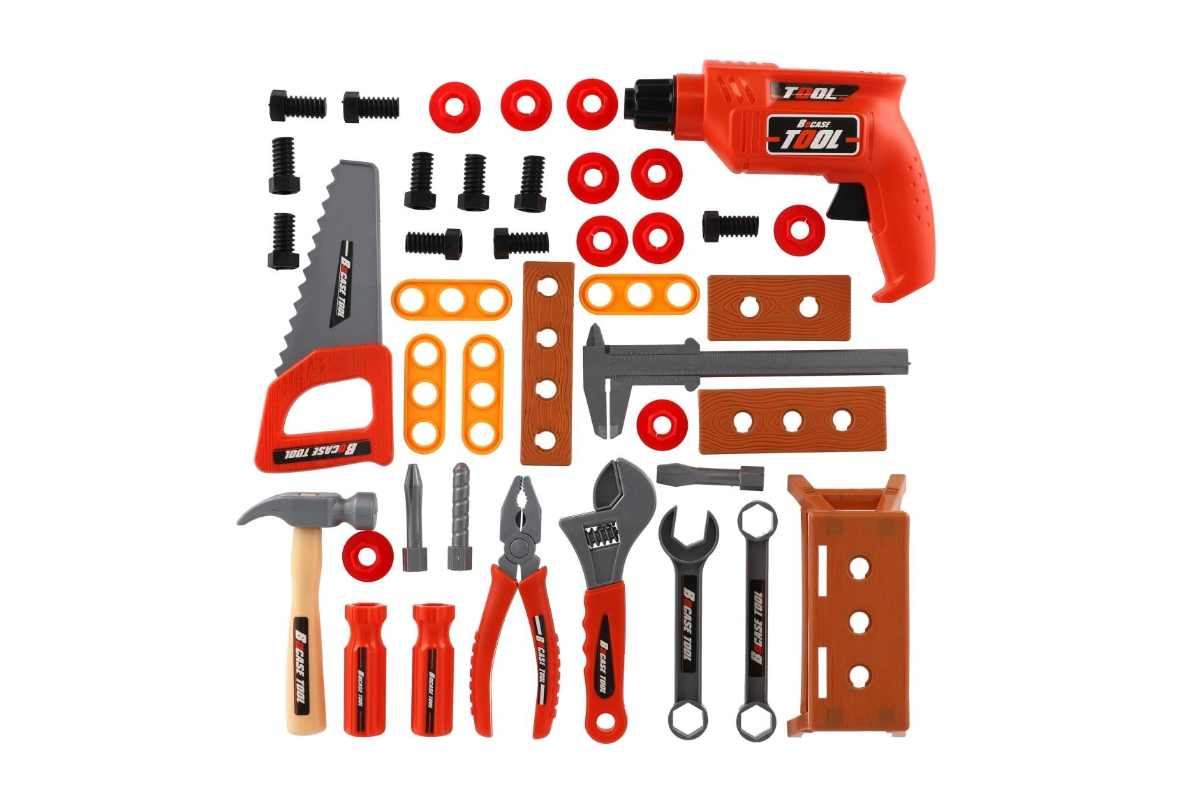 - Echipare bogată: diverse unelte, șuruburi, piulițe și piese de montaj pentru joc realist.