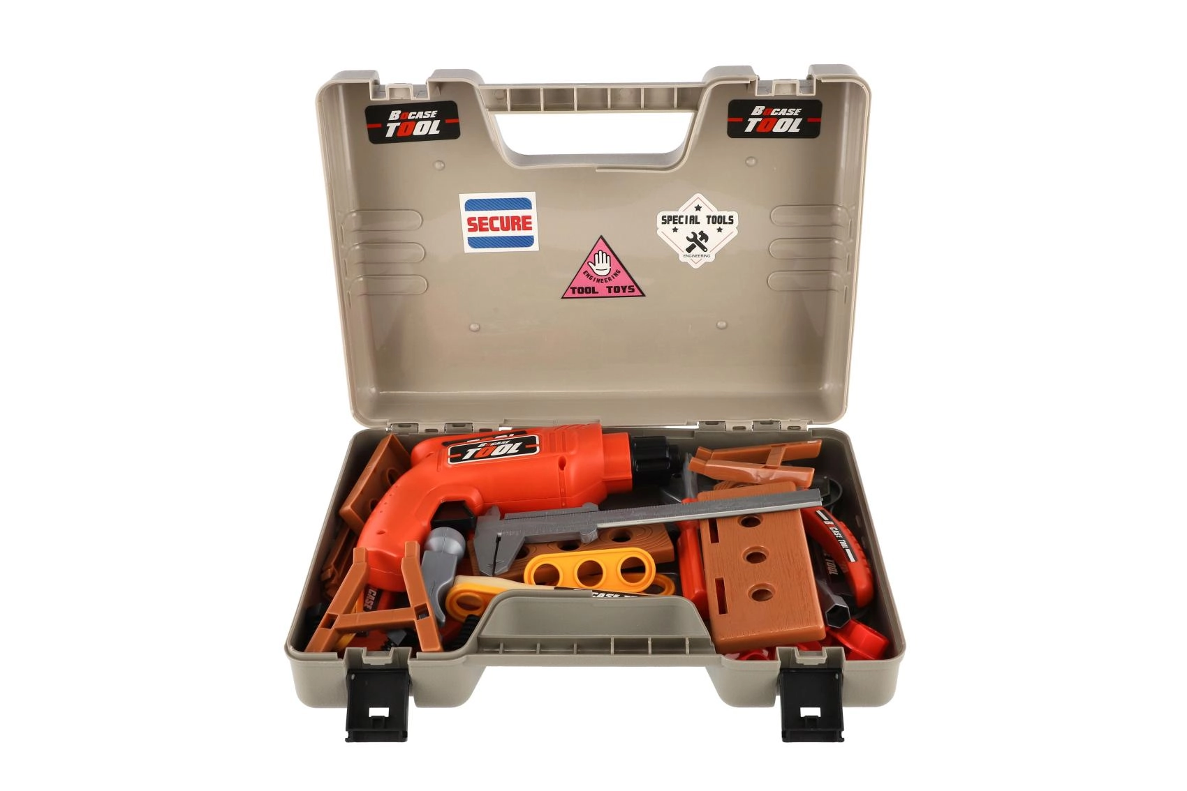 Geanta din plastic durabil, cu închideri solide, păstrează toate piesele la un loc și permite copiilor să ia sculele oriunde cu ei.