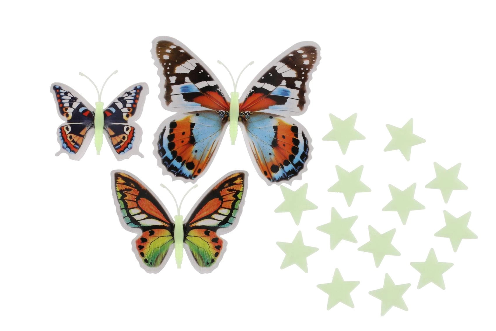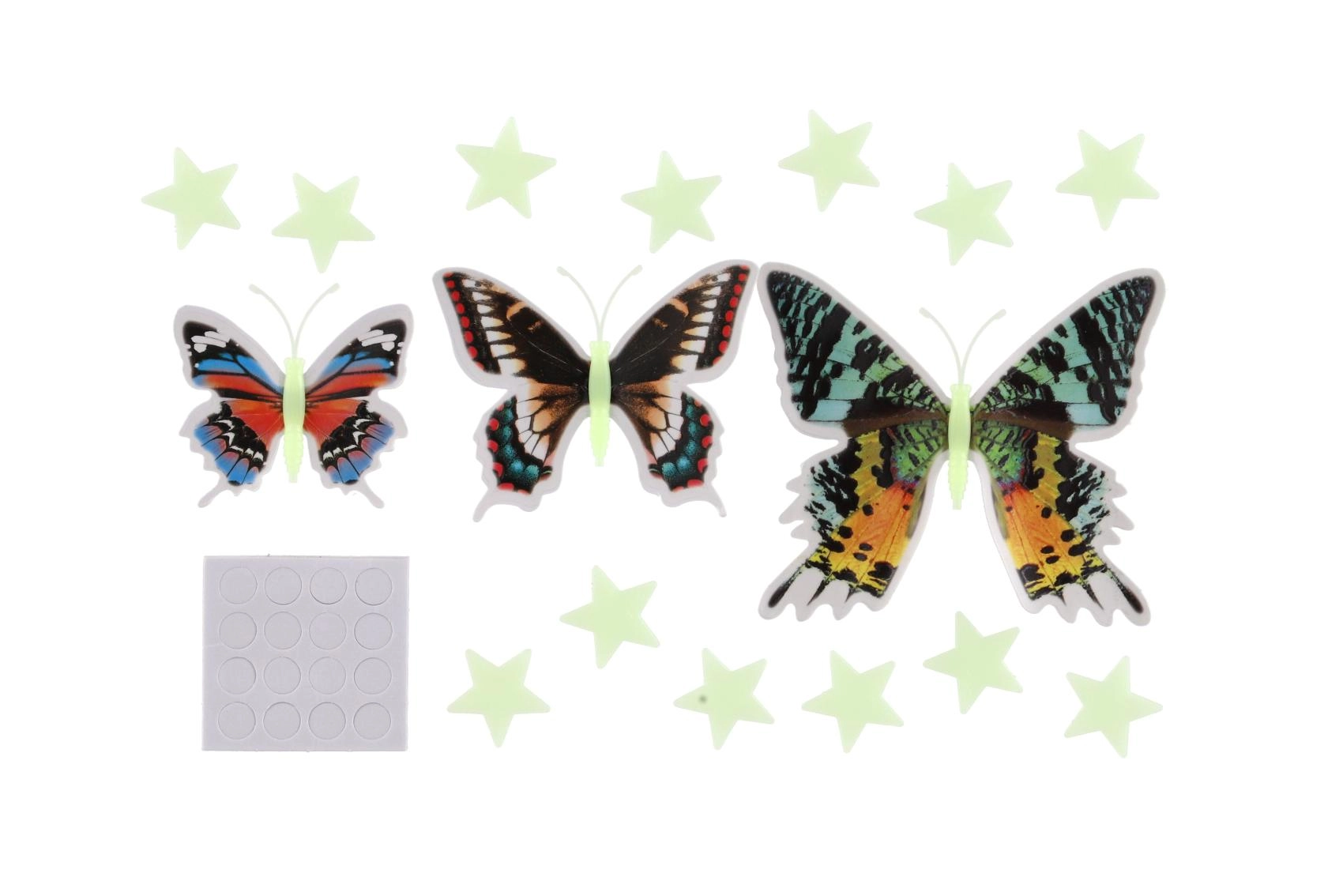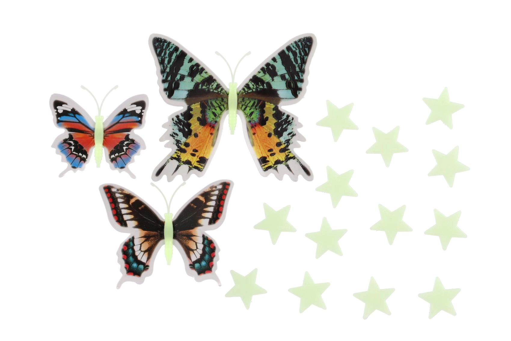 Set fermecător de fluturi colorați și steluțe care strălucesc în întuneric și creează o atmosferă plăcută pentru adormit. Instalare ușoară cu puncte adezive, efect 3D al aripilor de fluture și stele luminoase care transformă orice perete într-un univers creativ plin de imaginație.