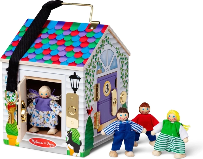 Construcția solidă din lemn de la MELISSA & DOUG rezistă jocului zilnic. Datorită mânerului practic, căsuța este ideală și pentru călătorii.