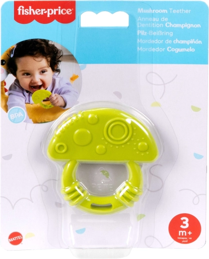 Jucăria de dentiție FISHER-PRICE, moale și sigură, în forma unei ciuperci verzi, oferă bebelușului alinare în timpul erupției dentare și susține primele etape ale dezvoltării senzoriale. Datorită formei ergonomice se ține ușor în mâinile mici, texturile variate masează delicat gingiile, iar materialul sigur, fără BPA asigură o utilizare liniștită și plăcută începând de la 3 luni.