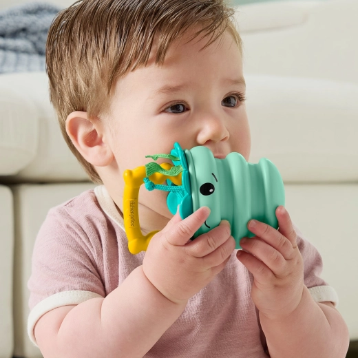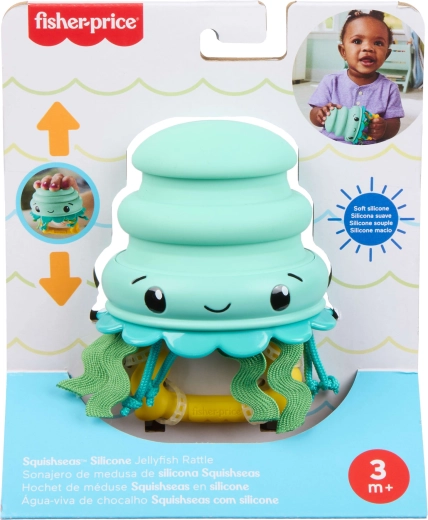 Adorabila zornăitoare senzorială meduză de la FISHER-PRICE, din silicon moale și sigur, îi va încânta pe bebelușii de la 3 luni. Datorită construcției telescopice, poate fi întinsă și comprimată, sprijinind motricitatea fină și învățarea relației cauză–efect. Diferitele texturi, părți mobile și funcția de jucărie de ros aduc alinare în perioada erupției dentare și stimulează simțul tactil și auzul.