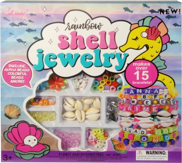 Set de mărgele colorate de diferite dimensiuni și forme pentru crearea creativă a brățărilor originale. Include și un șnur pentru înșirare. Forme diverse (scoici, floricele, litere), înșirare ușoară și distracție pentru copii de la 3 ani.