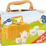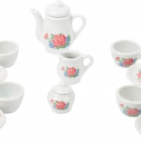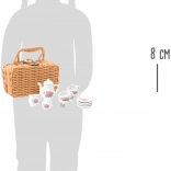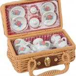 Acest minunat set de cafea din porțelan conține 14 piese de veselă, inclusiv un ceainic mare, vas pentru lapte, zaharniță și patru cești cu farfurioare. Totul este elegant așezat într-o valiză din răchită cu material în carouri roșu-alb. Designul cu trandafiri adaugă o notă romantică, făcând acest set ideal pentru ceaiuri imaginare atât în aer liber, cât și în interior.