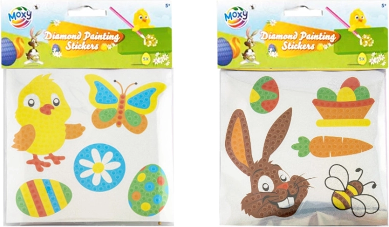 Mozaicul cu diamante pe autocolante este o modalitate ușoară și distractivă de a crea frumoase decorațiuni de Paște pentru ferestre, cadouri, caiete sau camerele copiilor. Trebuie doar să lipești treptat pietricelele acrilice colorate după șablon, iar în câteva minute vei obține un motiv strălucitor care va încânta atât copiii, cât și adulții.