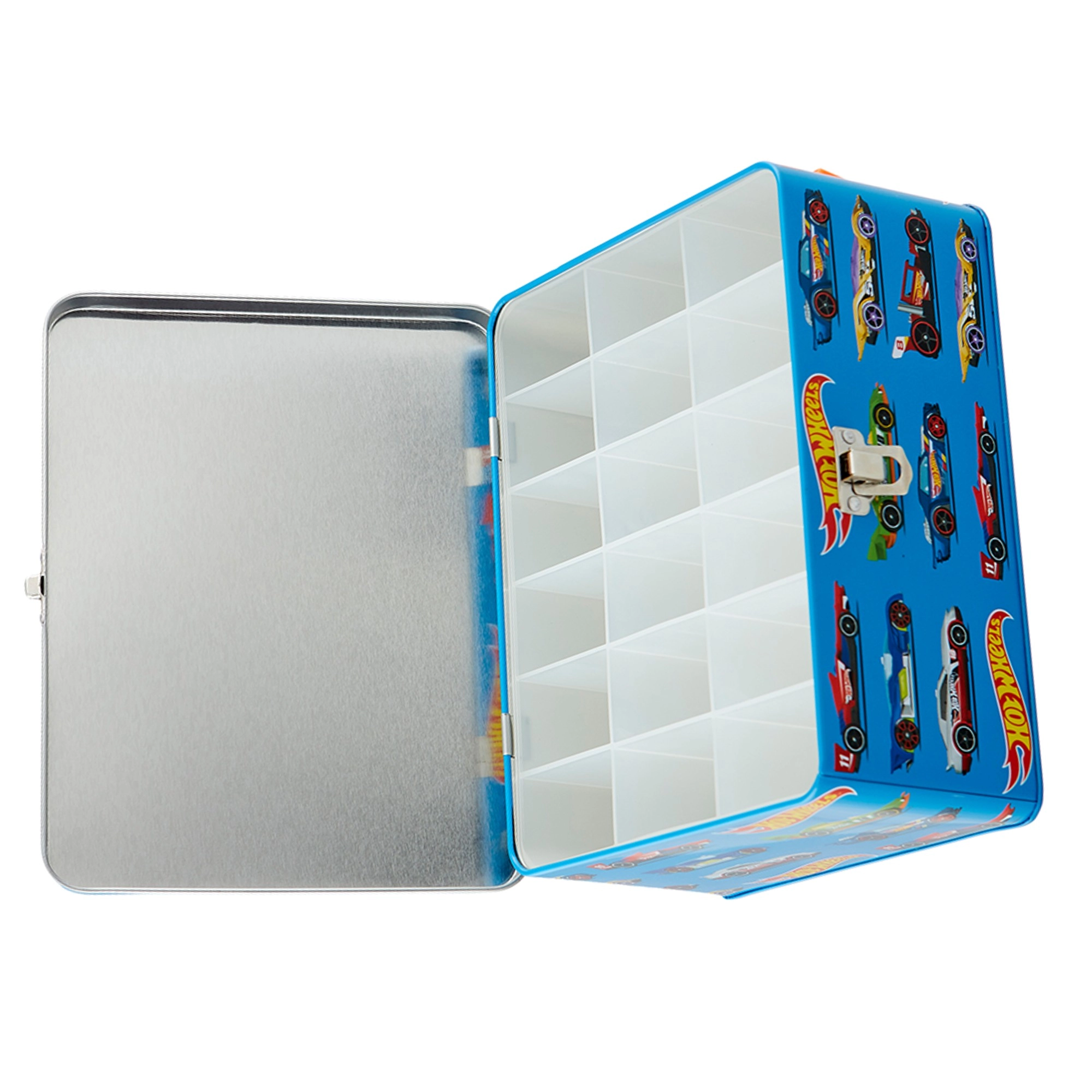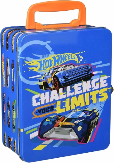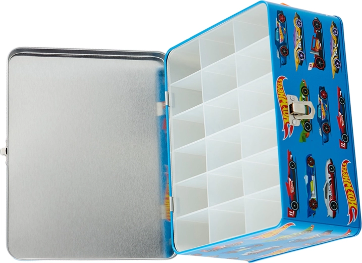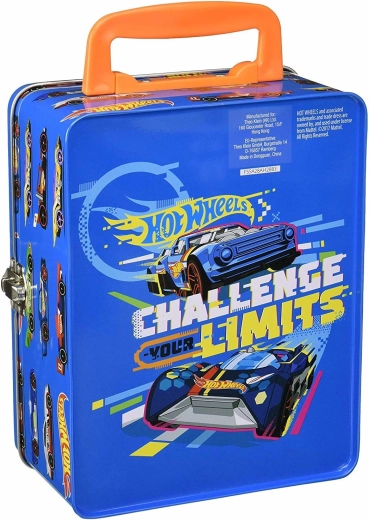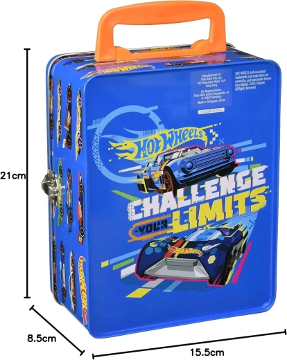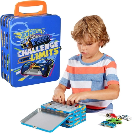 Această servietă albastră stilată, cu grafică de mașini de curse și sloganul „Challenge Your Limits”, este o soluție excelentă pentru micii colecționari. În interior găsiți un grilaj detașabil cu 18 compartimente separate, care păstrează mașinuțele ordonate și protejate. Construcția metalică robustă și închiderea cu cataramă asigură depozitarea în siguranță în timpul transportului.