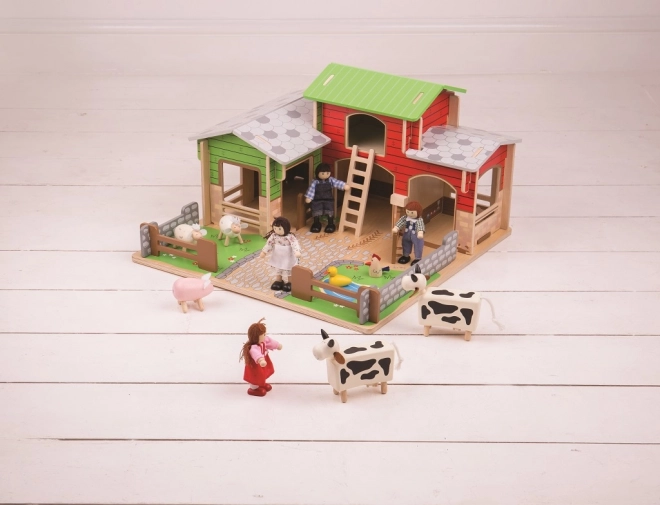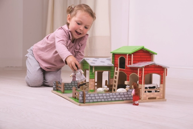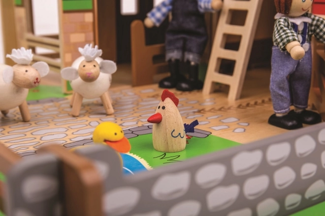 Setul este realizat din lemn de calitate provenit din surse responsabile și este compatibil cu alte accesorii ce pot fi achiziționate oricând. Elemente realiste precum iazul pentru rațe, garajul pentru tractor și țarcurile cu porți mobile susțin jocul imaginativ, povestirea și dezvoltarea motricității fine.