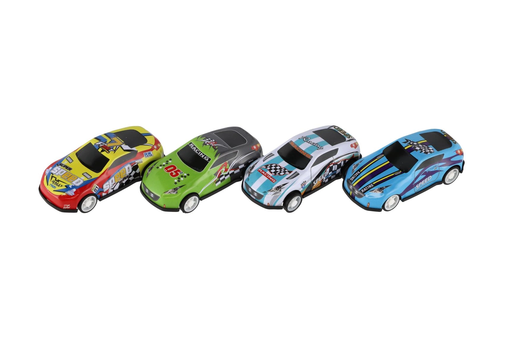 Mașinuțele pornesc cu o ușoară împingere și, datorită rulării libere, alunecă lin pe podea – ideal pentru piste de curse improvizate acasă.