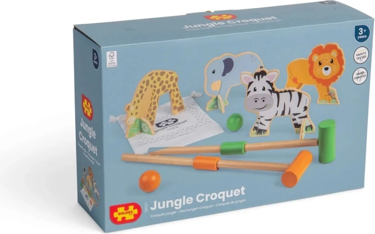 Setul este realizat din lemn certificat FSC provenit din surse sustenabile. Jocul susține coordonarea mână–ochi, dezvoltă motricitatea grosieră, răbdarea și învățarea alternării la joc. Datorită execuției durabile și marginilor netede, croquetul este o alegere excelentă pentru distracție sigură și de lungă durată.