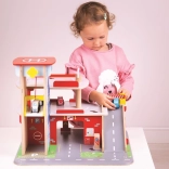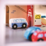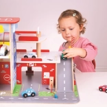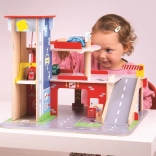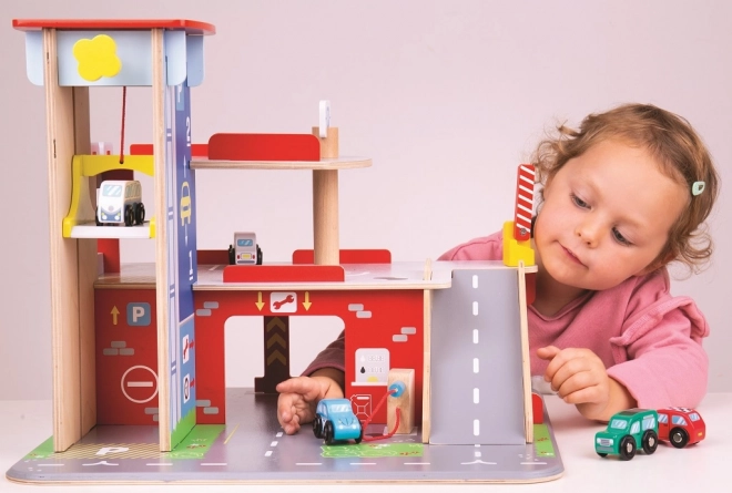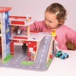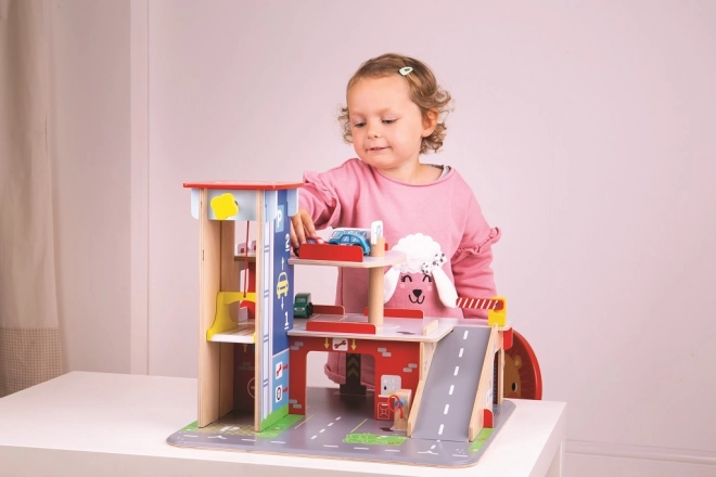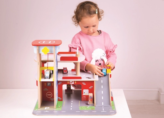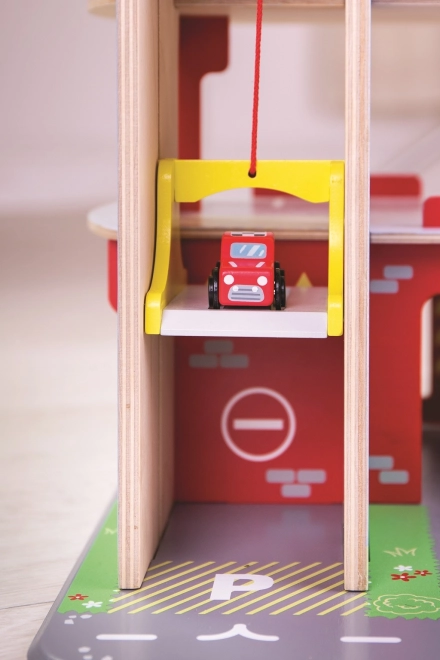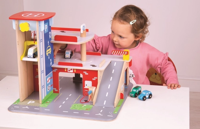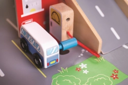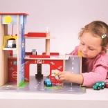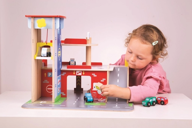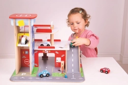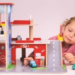 Copiii se vor bucura de un joc plin de distracție pe fiecare dintre cele trei etaje ale garajului cu parcare. La parter pot intra cu mașina în liftul funcțional și apoi urca până la etajul doi pentru a parca. La parter, copiii vor găsi service, spălătorie auto și pompă de benzină. De la primul etaj, mașinile pot pleca folosind liftul sau pe rampă, dar atenție, mașinile trebuie să aștepte ridicarea barierei! Cel mai înalt punct al garajului este heliportul. Acest garaj are pur și simplu tot ce are nevoie un mic șofer pentru a ajunge din punctul A în punctul B. Susține creativitatea și imaginația. Dezvoltă coordonarea mână-ochi, motricitatea fină și îndemânarea. Poate fi completat cu mașinuțele Bigjigs Toys și Bigjigs Rail. Fabricat din materiale de calitate provenite din surse responsabile. Principalele caracteristici: 3 etaje cu parcare și heliport, lift funcțional, service, spălătorie și pompă la parter