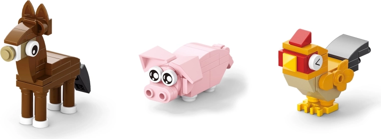 Acest set universal aduce copiilor bucuria descoperirii vieții la fermă. Din piesele incluse se pot construi până la 12 tipuri de animale, astfel încât de fiecare dată își pot crea o altă gospodărie și pot inventa povești noi. Piesele sunt compatibile cu seturile obișnuite de construcție, astfel că extinderea este ușoară, iar distracția nu se termină.