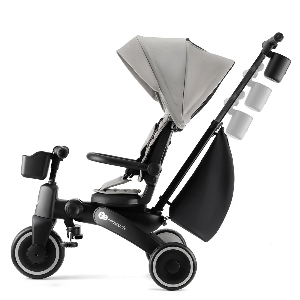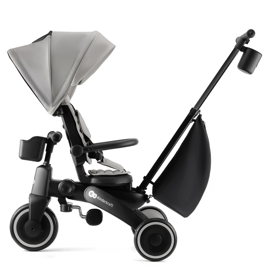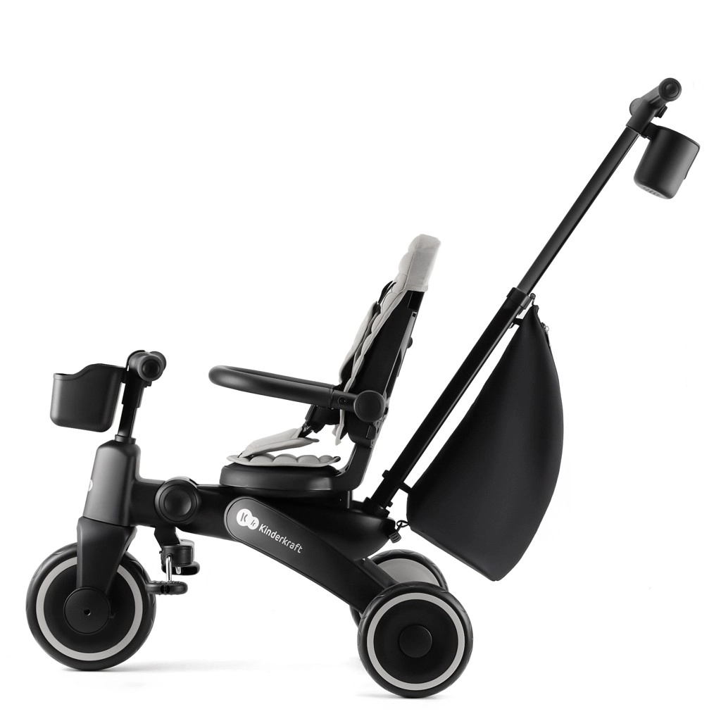 Sunt incluse și o geantă textilă încăpătoare cu șnur pentru jucării și mărunțișuri, o sonerie și un mâner parental pentru control facil. Datorită greutății reduse de 7,2 kg, tricicleta se manevrează ușor acasă și în călătorii.