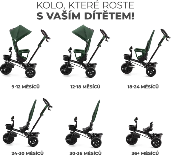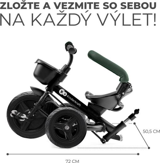 Kinderkraft Aveo crește odată cu copilul – de la primele plimbări cu scăunelul rotativ până la pedalarea independentă. Roțile mari, antipana, asigură stabilitate și aderență bună pe trotuar și pietriș, în timp ce funcția de roată liberă permite copilului să se odihnească fără a opri tricicleta. Datorită plierii rapide, o puteți pune cu ușurință în portbagajul mașinii sau în dulap.