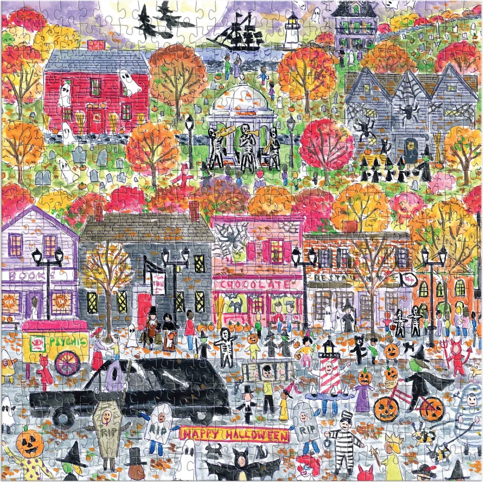 Bucură-te de atmosfera magică de toamnă cu puzzle-ul pătrat GALISON de 500 de piese, care formează o ilustrație a defilării de Halloween. Imaginea finală are dimensiunea de 51 × 51 cm – mărime ideală atât pentru relaxare, cât și pentru expunere.