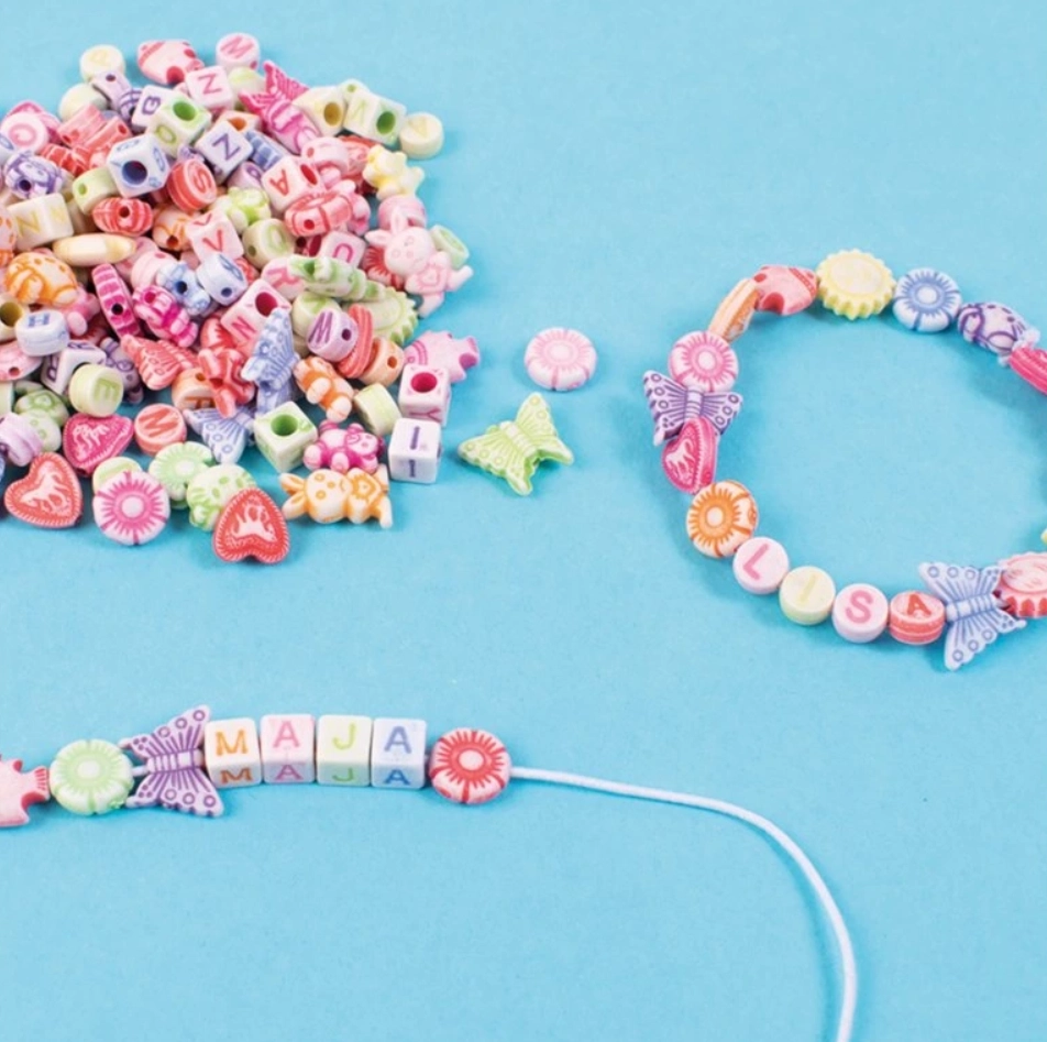 Mărgelele pastelate PLAYBOX oferă copiilor și părinților posibilități infinite de creație. Datorită combinației de nuanțe pastelate moi, forme diverse și mărgele cu litere, copiii își pot exersa vocabularul într-un mod ludic și pot crea bijuterii personalizate cu nume sau mesaje.
