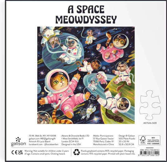 Descoperă plăcerea și stilul asamblării cu puzzle-ul pătrat GALISON cu motivul Odiseea pisicii spațiale. Conține 500 de piese și, după asamblare, are dimensiunea de 50,8 × 50,8 cm – ideal pentru relaxare, antrenarea concentrării și ca cadou original pentru iubitorii de pisici și ai universului.
