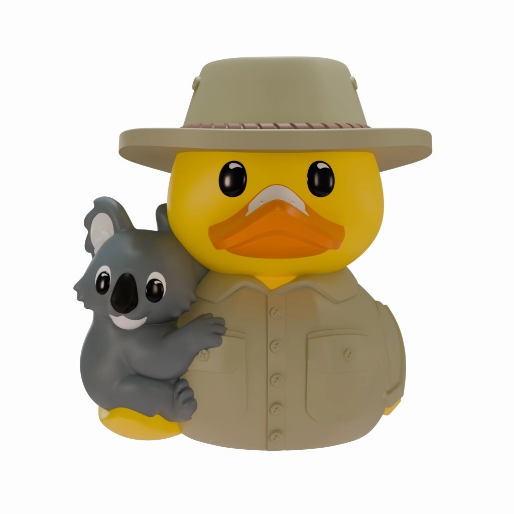 Descoperă simpatica rațușcă de colecție din seria Tubbz, inspirată de aventura australiană. Datorită vinilului de calitate, detaliilor precise și designului jucăuș cu pălărie de ranger și koala, este ideală pentru colecționari, ca cadou original și decorațiune stilată pentru raft.