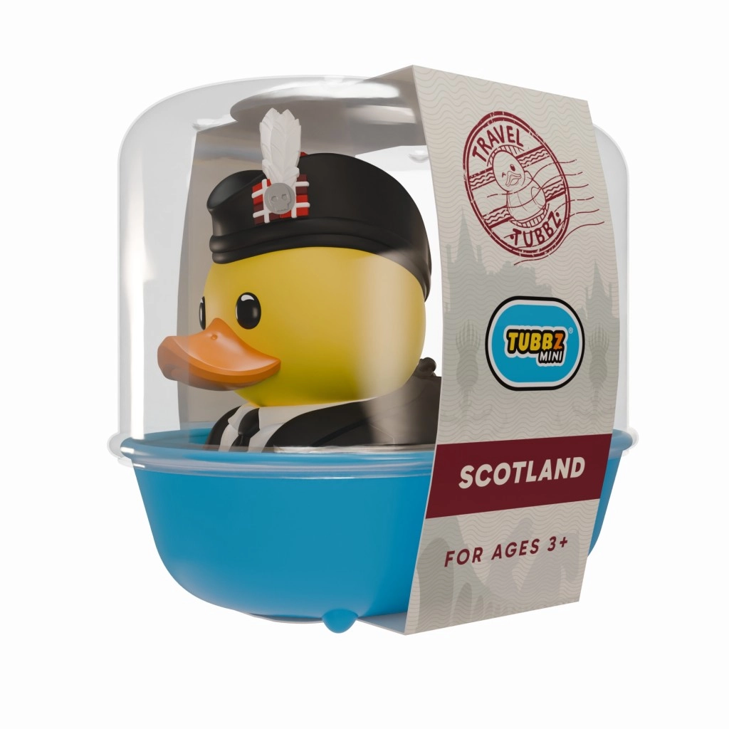 Rața colecționabilă Tubbz – Scoția aduce în vitrina ta farmecul culturii scoțiene în iconica interpretare de rață. Fabricată din plastic durabil și solid cu suprafață netedă, decorată cu model tartan și completată de o pălărie stilată cu ciucure. Ideal cadou de tip merch pentru colecționari, călători și iubitorii decorațiunilor originale.