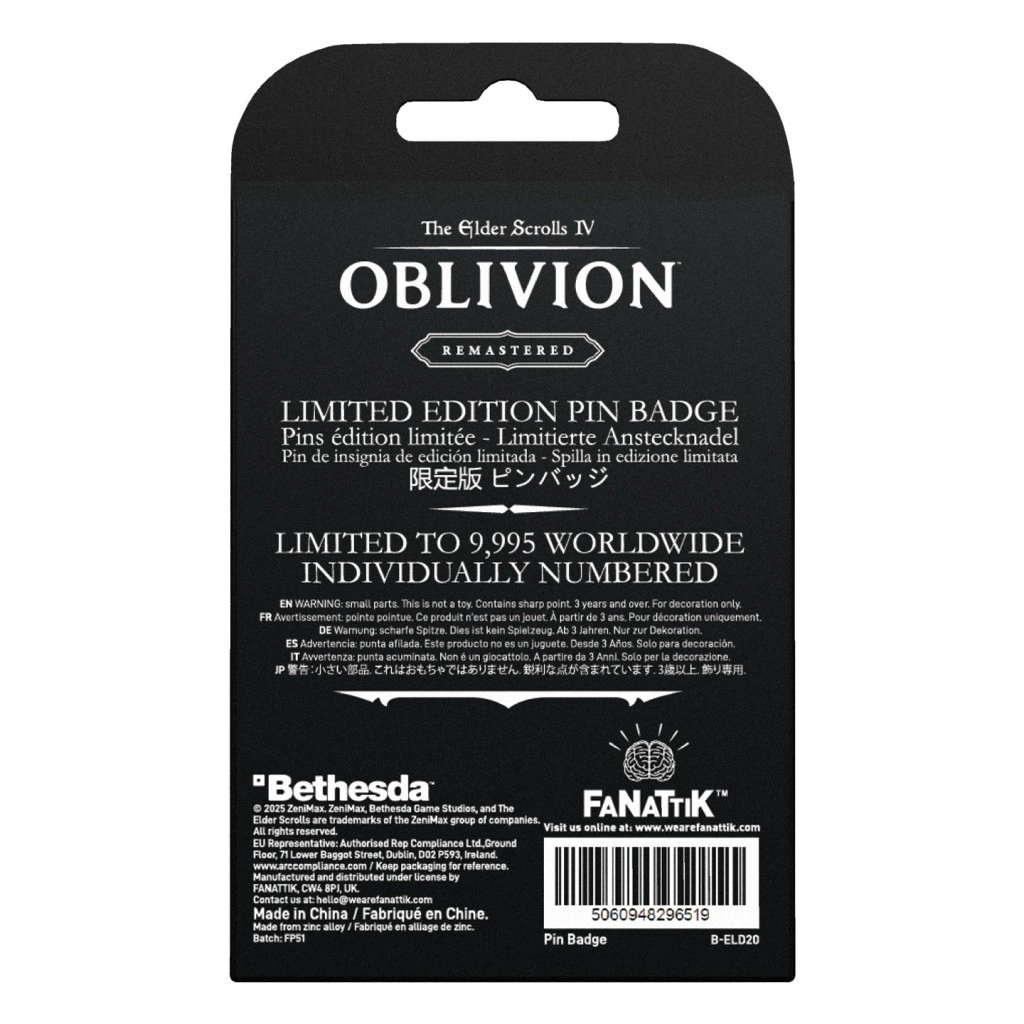 Exprimați-vă pasiunea pentru universul THE ELDER SCROLLS cu o insignă elegantă inspirată de Oblivion. Construcția metalică, contrastul pronunțat dintre negru și argintiu și simbolul iconic garantează că va ieși în evidență pe rucsac, jachetă sau șapcă.