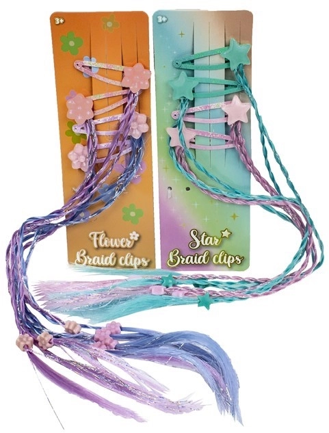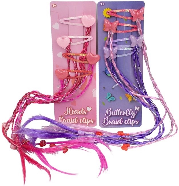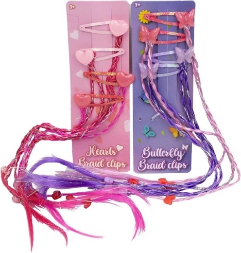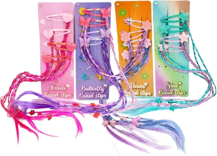 Înveselește coafurile copiilor cu aceste agrafe jucăușe cu codițe colorate. Fiecare set conține 4 agrafe cu forme diferite (inimă, fluturaș, floare, stea) și șuvițe lungi sclipitoare cu mărgele pentru un look fermecător. Ideal pentru uz zilnic, petreceri și ședințe foto.