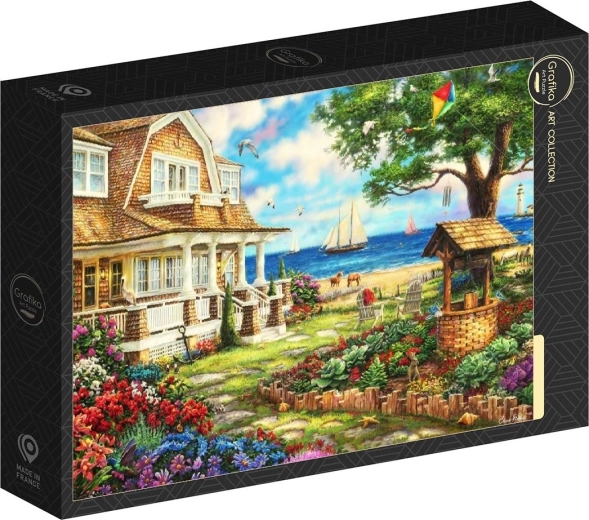 Descoperă relaxarea cu un puzzle ce ilustrează o căsuță pitorească pe malul mării. Acest puzzle de calitate, cu 1000 de piese, oferă decupaje precise, tranziții cromatice fine și, după asamblare, dimensiunea de 69 × 47,8 cm – ideal pentru relaxare, antrenarea răbdării și decorarea interiorului.