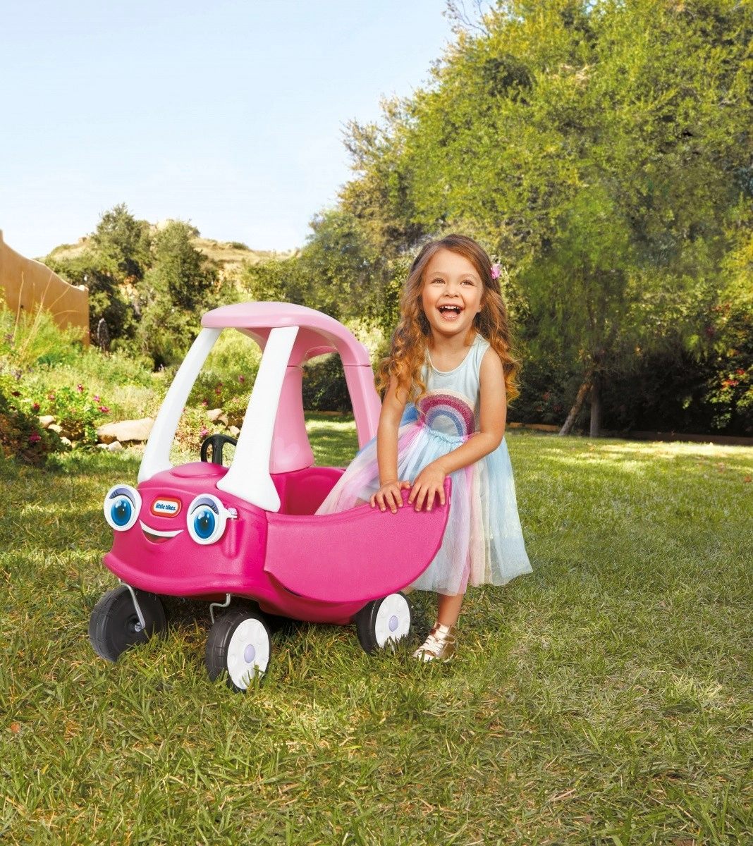 Drăgălașa mașinuță fără pedale roz Cozy Coupe Princess, cu acoperiș de protecție și „chip” zâmbitor, susține imaginația, motricitatea grosieră și primele deplasări în siguranță acasă și afară. Copilul poate merge împingând cu picioarele sau poate fi împins(ă) de un adult, fiind potrivită și pentru cei mai mici.