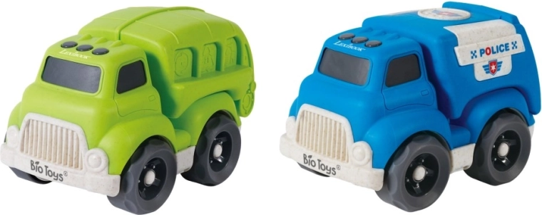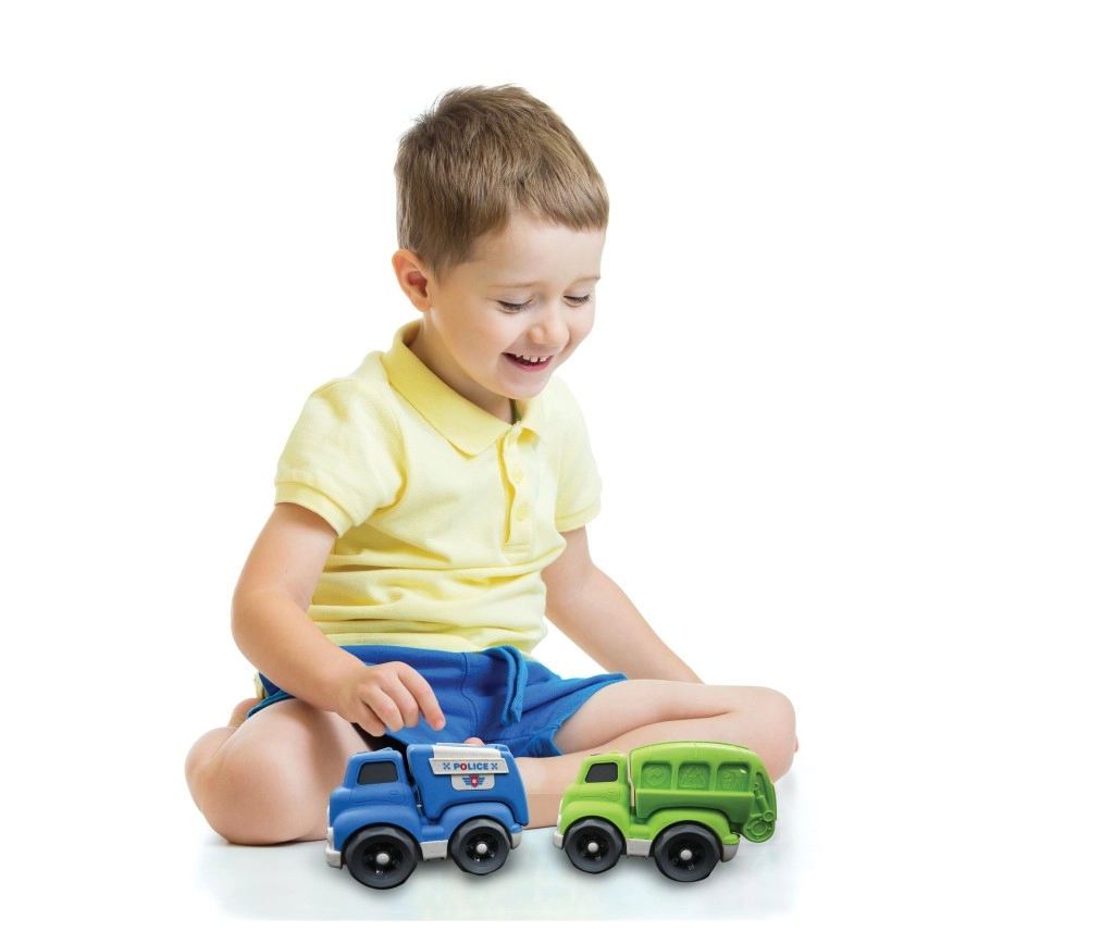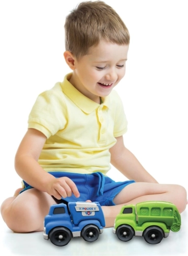 Copiii vor fi atrași de culorile vii ale poliției albastre și mașinii verzi de salubritate, precum și de detaliile în relief, cum ar fi inscripția „Police”, tomberoanele și pictogramele tematice. Jocul cu mașinuțele susține dezvoltarea motricității, coordonarea și jocurile de rol inspirate din lumea reală.