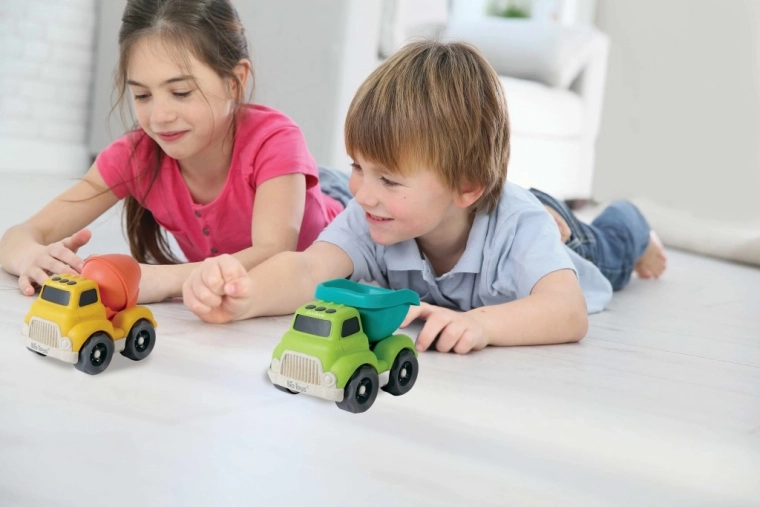 Camioanele sunt fabricate din bioplastic pe bază de fibre de grâu – o opțiune mai prietenoasă cu natura, fără compromisuri în privința durabilității și siguranței.