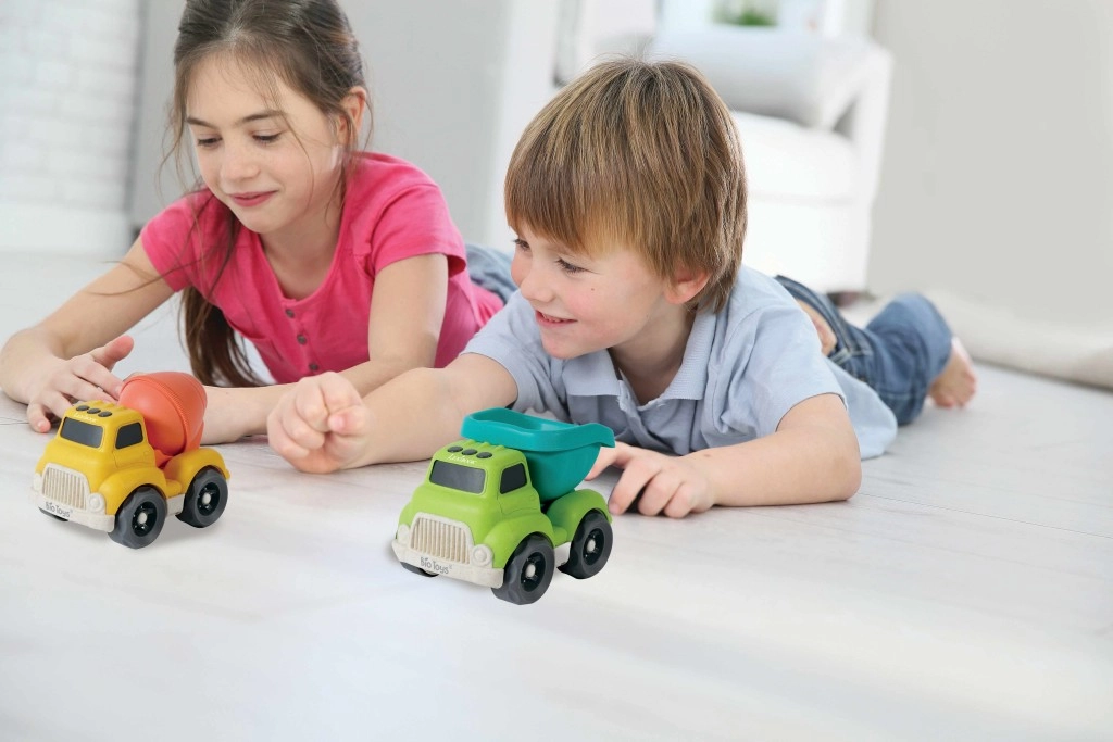 Vehiculele sunt fabricate din bioplastic pe bază de fibre de grâu, o alternativă ecologică la materialele plastice tradiționale. Ambalajul cu aspect natural, marcat BIO TRUCK, evidențiază caracterul sustenabil al produsului. Ideal pentru joacă independentă acasă sau pentru distracție împreună cu părinții ori prietenii.