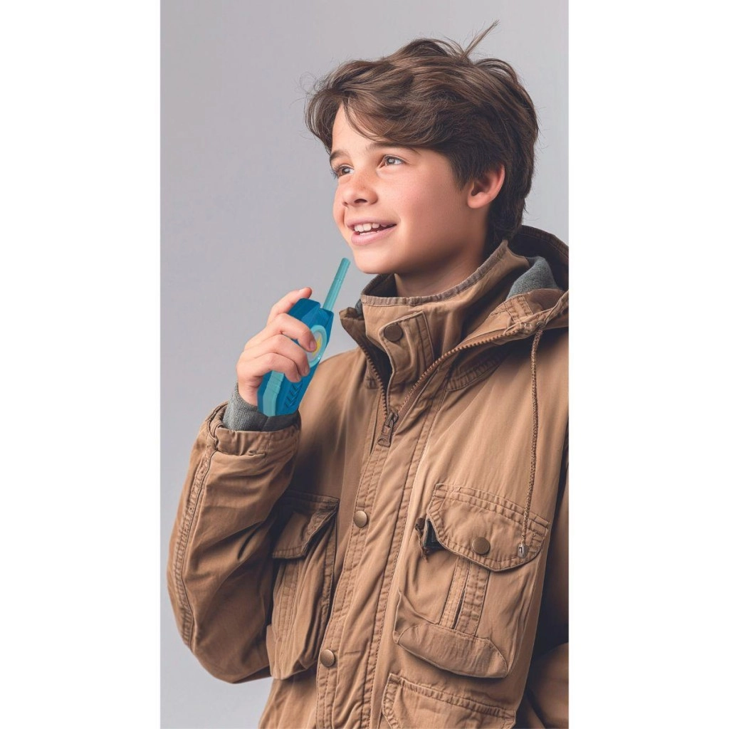 Walkie-talkie-urile pentru copii LEXIBOOK, distractive și rezistente, cu o rază de acțiune de până la 250 m, îi vor încânta pe micii exploratori de la 3 ani. Oferă operare ușoară, sunet de calitate și formă ergonomică pentru mâini mici. Datorită designului modern în combinație albastru–turcoaz și a antenei lungi, sunt ideale pentru joacă atât afară, cât și în casă.
