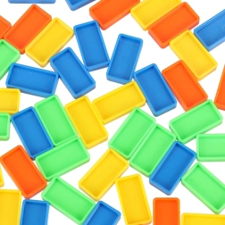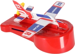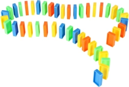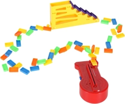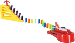 Conținutul pachetului: 126× piese de domino (4 culori), 2× avioane cu lansator, piese de traseu, 2× bile, 1× figurină, 12× suporturi pentru domino, 52× abțibilduri educaționale (litere, cifre, semne matematice).