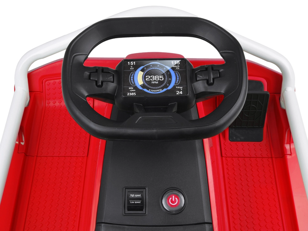 Gokartul electric de drift 24V le oferă copiilor control, putere și distracție autentică la volan. Datorită motorului brushless de 300 W, vitezei de până la 14 km/h și construcției cu cinci roți, este ideal pentru derapaje controlate și viraje line. Șasiul metalic robust, centura de siguranță și cele două moduri de mers asigură o experiență sigură și incitantă.