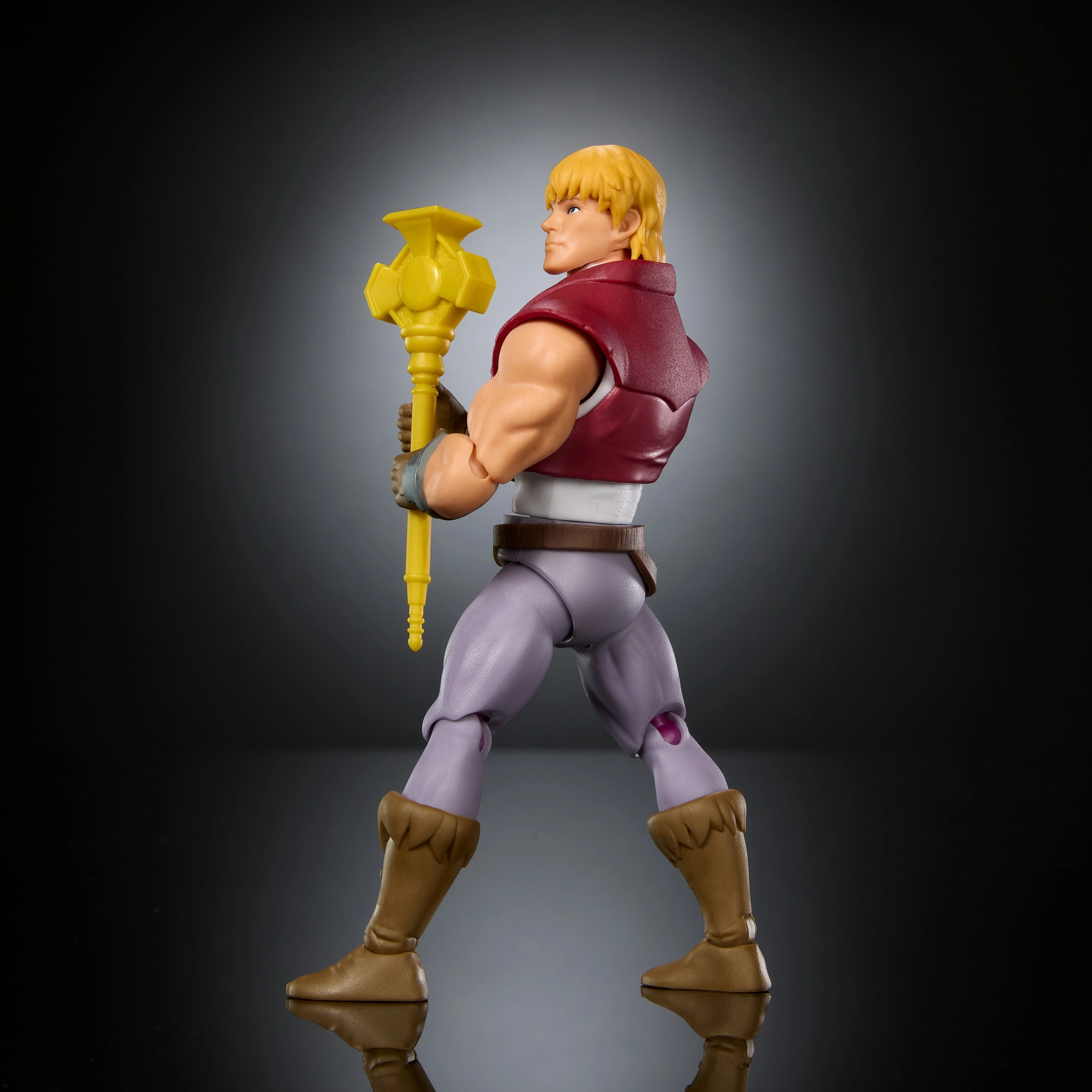 Figurină autentică Prince Adam din seria Masters of the Universe, ediția 200X Cartoon Collection, care aduce un design nostalgic și o structură modernă cu articulații. Măsoară 14 cm, oferă 16 puncte de articulație pentru pozii dinamice și este completată de schelet/prăjină a lui Prince Adam, inspirată de episodul „The Courage of Adam”.