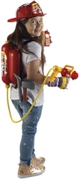 Acest set de pompier este creat pentru micii eroi care iubesc acțiunea și aventura. Rezervorul mare de apă, în culoarea roșie clasică cu detalii galbene, se poartă pe spate și, cu ajutorul furtunului și al pistolului, le permite copiilor să „stingă incendiul” cu un jet de apă. Datorită construcției solide și plasticului de calitate, jucăria este rezistentă și pregătită pentru utilizare intensivă.