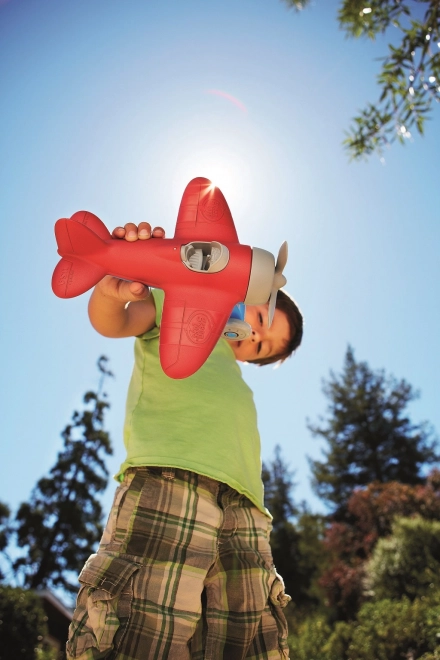 Acest avion roșu robust, cu tren de aterizare cu două roți și contururi netede, se potrivește perfect în mâinile mici ale copiilor. Cei mici se vor bucura de mult joc imaginativ acasă și afară – elicea se rotește lin, iar jucăria este ușoară, dar foarte rezistentă.