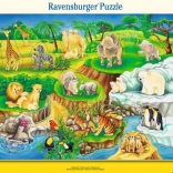 - 14 elemente inclusiv cadru, ilustrând animale la zoo.