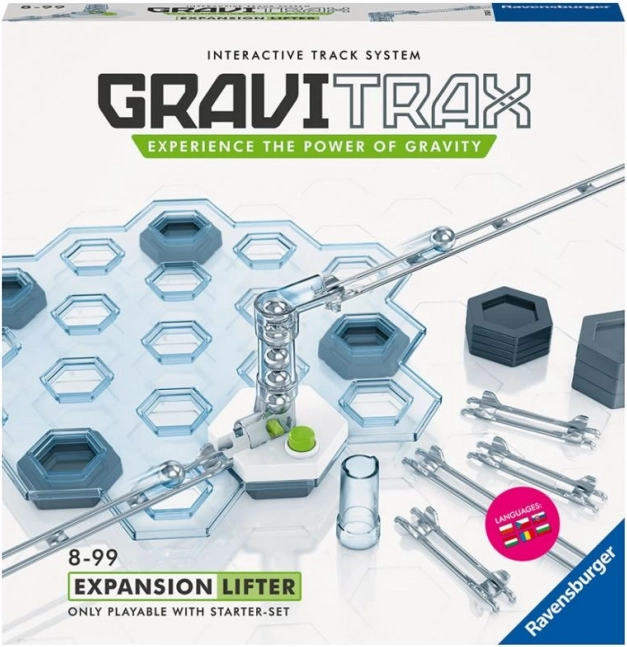 Setul de extindere GraviTrax lift adaugă pistei tale un mecanism inteligent care transportă automat bilele înapoi la un nivel superior. Astfel poți crea trasee mai lungi, mai rapide și mai ingenioase. O alegere perfectă pentru toți constructorii care vor să obțină maximum din pista lor.