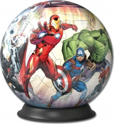 3D Puzzleball de la Ravensburger oferă calitate și distracție pentru fanii supereroilor, mici și mari. Datorită pieselor curbe precise, asamblarea este ușoară, stabilă și fără lipici. Sfera finală cu tema Marvel Avengers devine un accesoriu atractiv pentru orice încăpere.