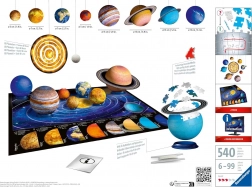 Datorită calității RAVENSBURGER, asamblarea este cursivă, distractivă și instructivă. Planetele finalizate pot fi agățate sau expuse pe suport, pentru a crea acasă un model spectaculos al spațiului. Este inclus și un poster față-verso cu informații (inscripții în limbă străină) și un ghid ilustrat pentru un start ușor.