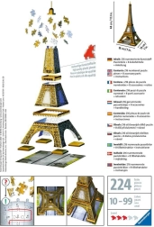 Bucurați-vă de asamblarea puzzle-ului tridimensional cu modelul Turnului Eiffel. Piesele special curbate și flexibile permit o îmbinare precisă fără nevoie de adeziv, garantând stabilitatea excelentă a acestei construcții iconice. Modelul este fabricat din plastic rezistent, asigurându-i o durată de viață îndelungată.