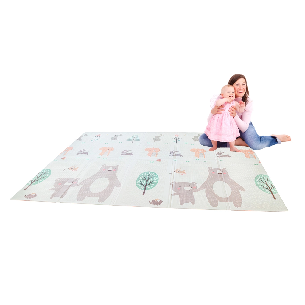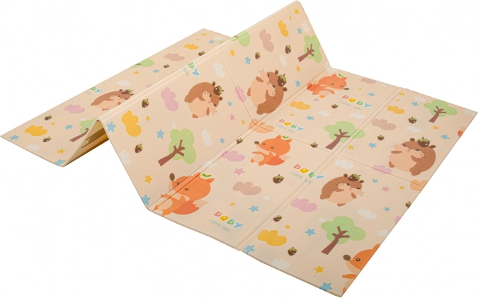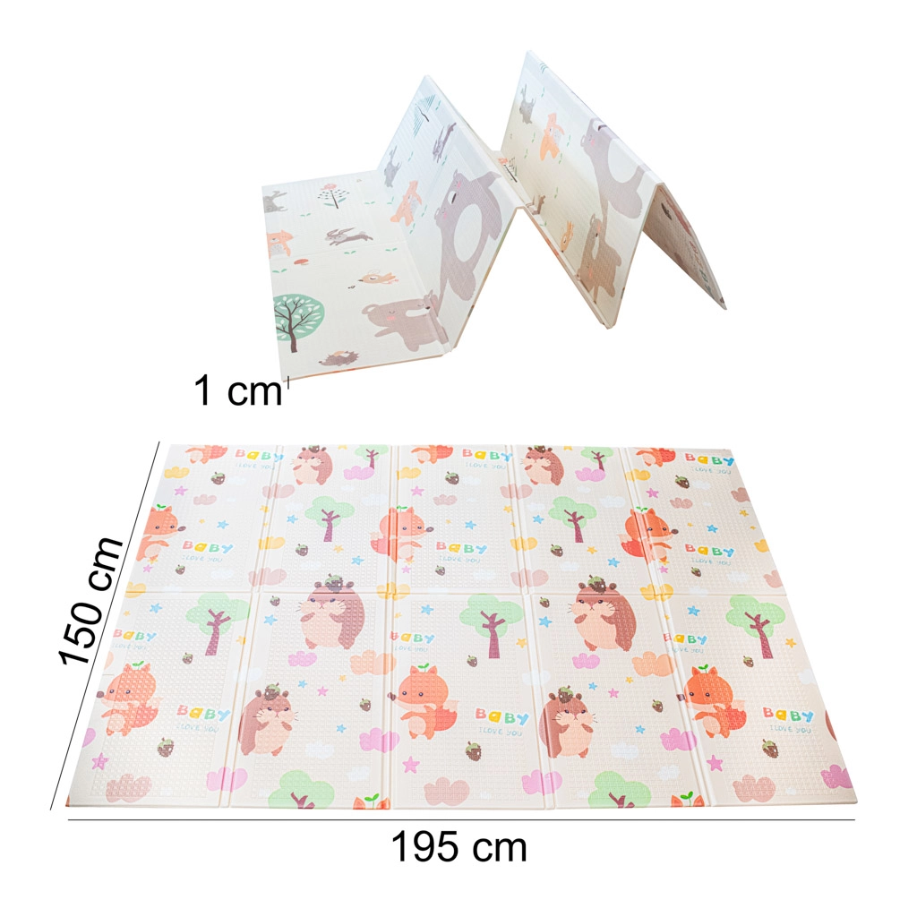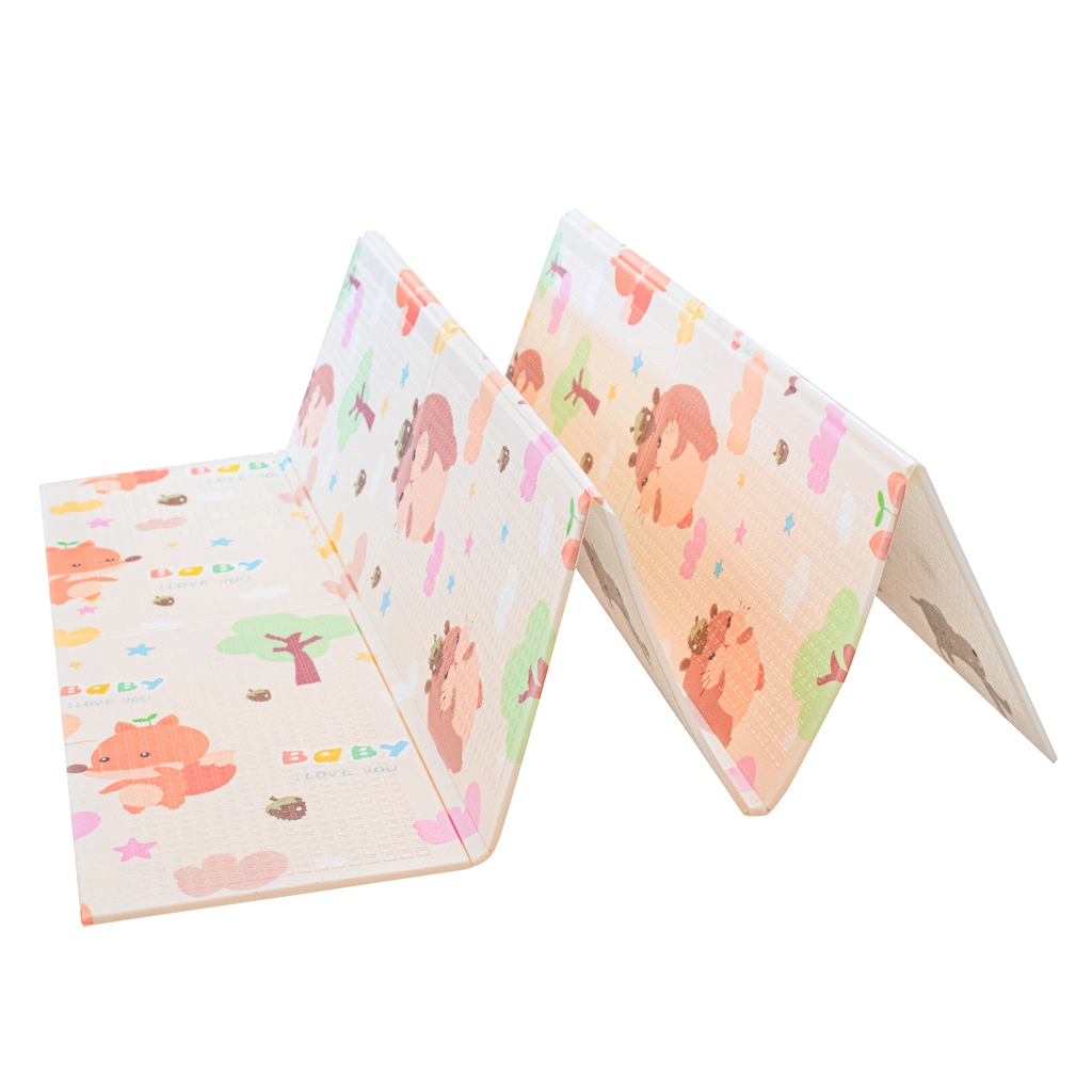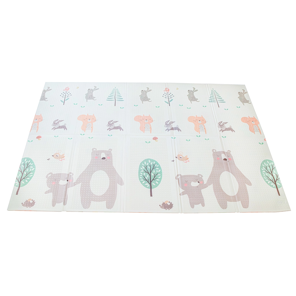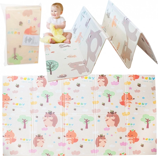 Vă oferim salteaua pliabilă din spumă bipartită cu arici/urs, fabricată din material XPE sigur, cunoscut pentru moliciunea și durabilitatea sa. Salteaua este potrivită pentru copii încă din primele zile de viață, iar textura sa moale este ideală pentru târâre și primii pași.