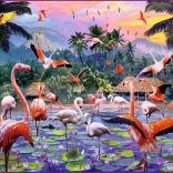 Culorile vii, flamingii și nuferii creează o scenă care te va cuceri și va deveni o podoabă a interiorului după înrămare.