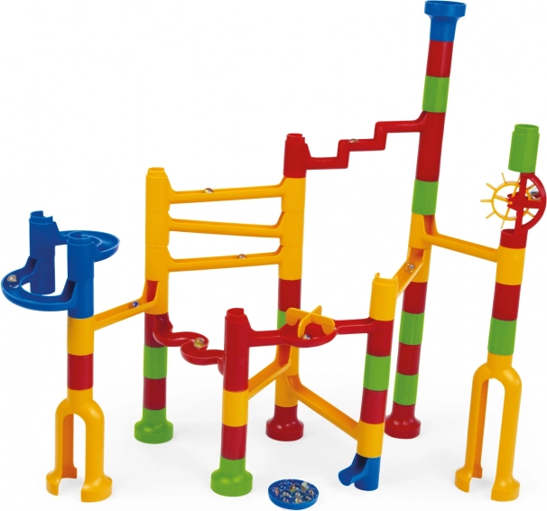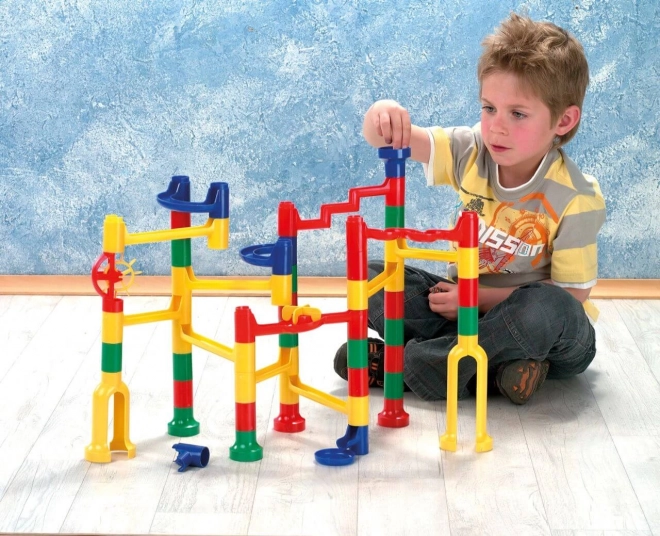 Această pistă de bile de la marca LENA vă oferă ore de distracție datorită variabilității și ingeniozității sale. Este ideală pentru copiii de la trei ani și aduce o mulțime de opțiuni pentru a asambla piste conform propriei imaginații.