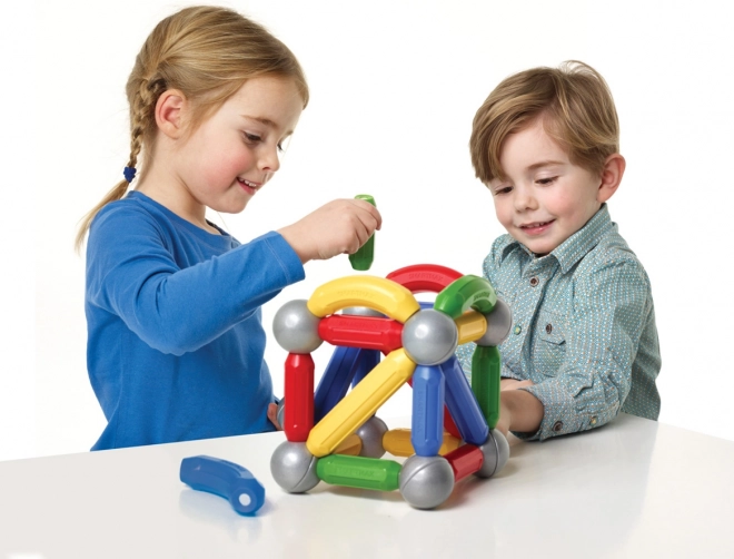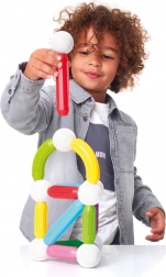 Setul de construcții magnetic SmartMax Start Plus este alegerea ideală pentru micii exploratori. Setul conține 30 de piese, incluzând tije lungi, tije medii, curbe și bile de conectare, care permit asamblarea construcțiilor simple și complexe. Copiii pot experimenta diferite forme și construcții 2D și 3D, precum turnuri sau poduri.