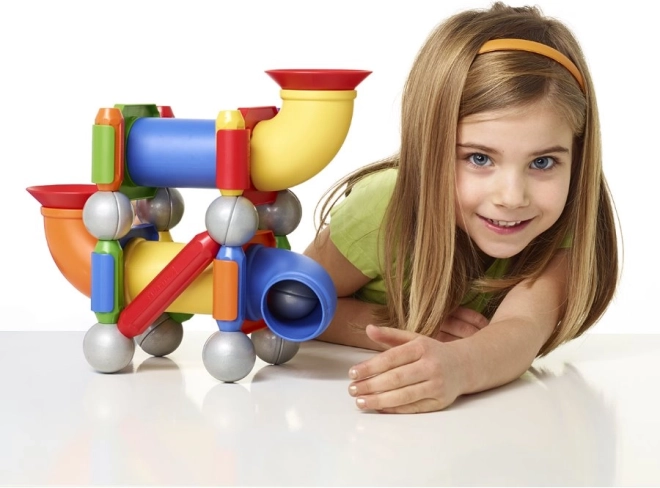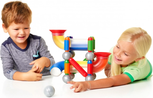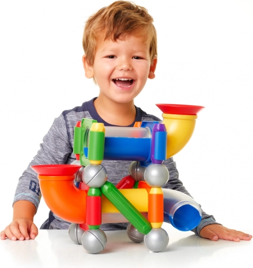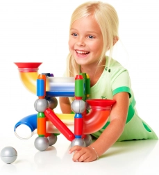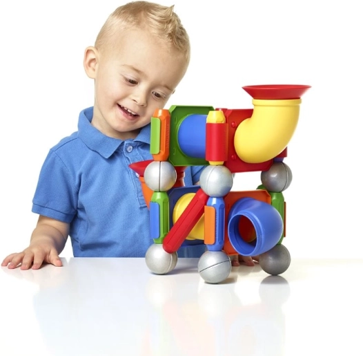 Permite o conexiune ușoară și sigură a pieselor pentru a crea structuri diverse. Magneții fascinează copiii mici și le stimulează curiozitatea.
