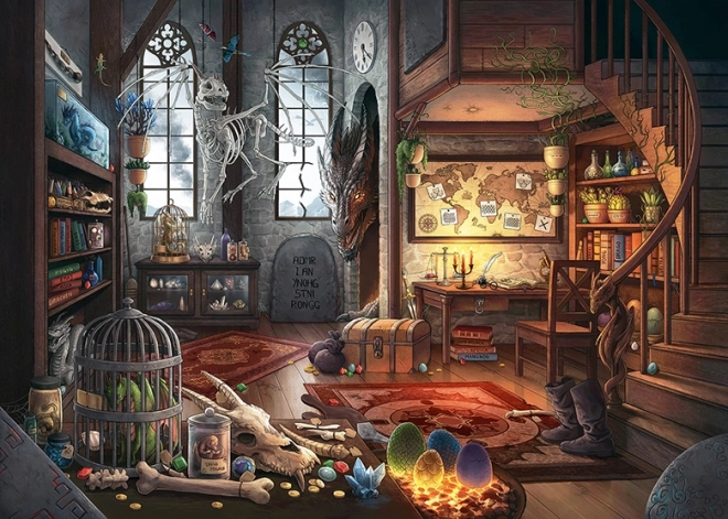 Pregătește-te pentru o aventură cu Puzzle Ravensburger EXIT: Laboratorul Dragonului, conținând 759 piese. Proiectat pentru jucători de la 12 ani, acest puzzle fascinant este ideal pentru băieți și fete care sunt atrași de lumea magiei și misterului.